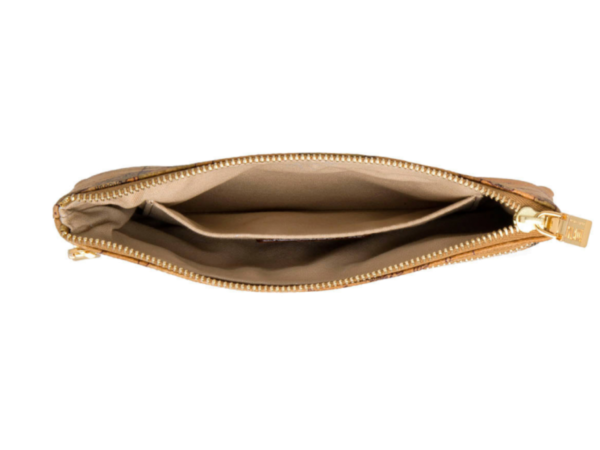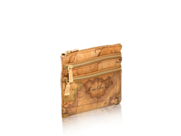 La bustina portatutto in Geo Classic è di medie dimensioni ed è dotata i due pratiche tasche frontali chiuse con zip. La sua forma piatta consente di riporla facilmente all’interno della borsa.