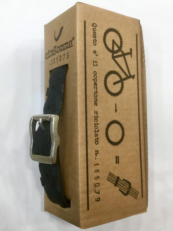 Questa cintura nasce da un vero copertone di bicicletta, compagno fedele sulla strada e per questo è stato amato del suo proprietario, ora è pronto per una nuova avventura.
