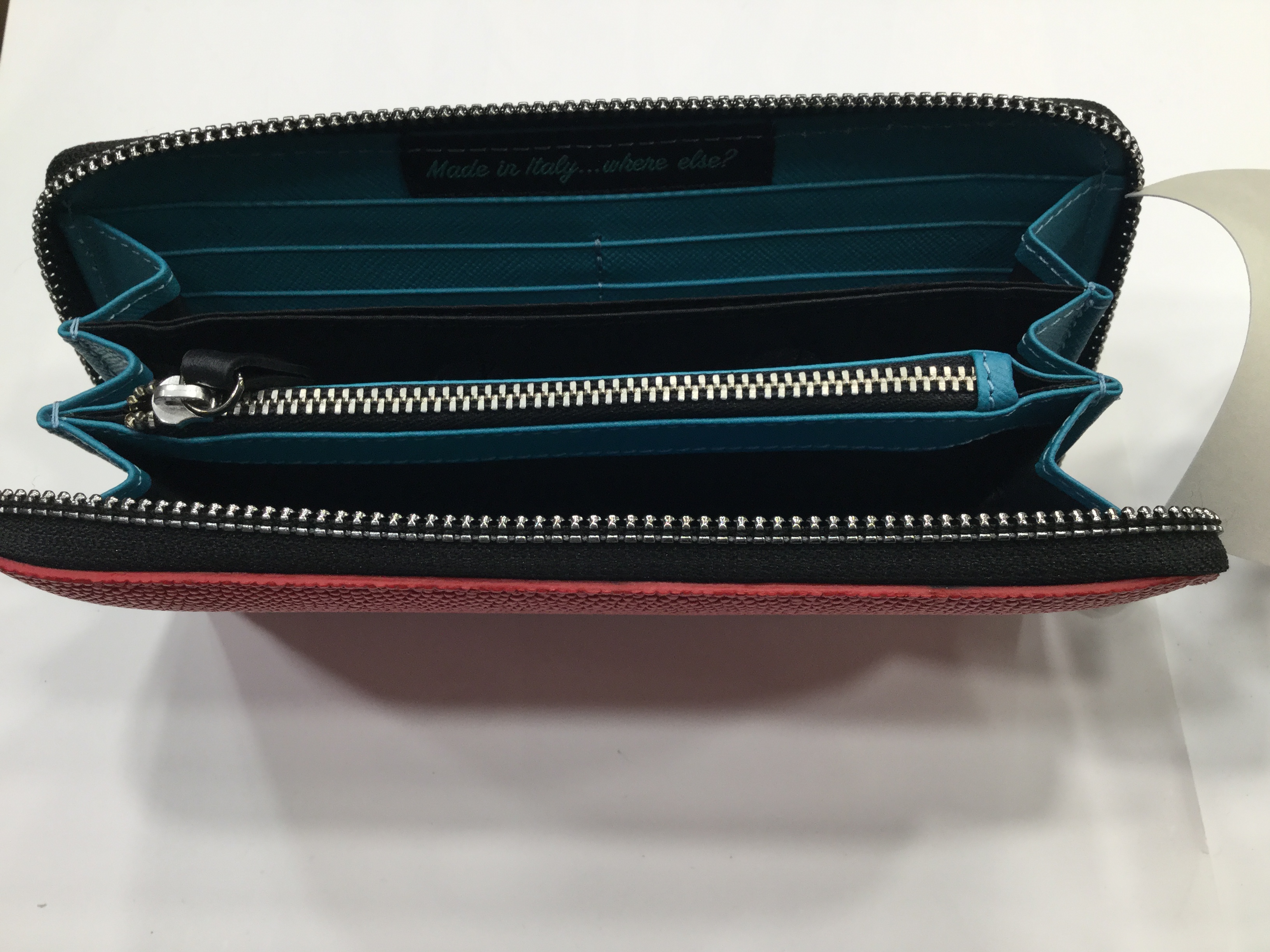 Compartimenti interni per banconote, scomparti porta carte di credito, tasca porta monete