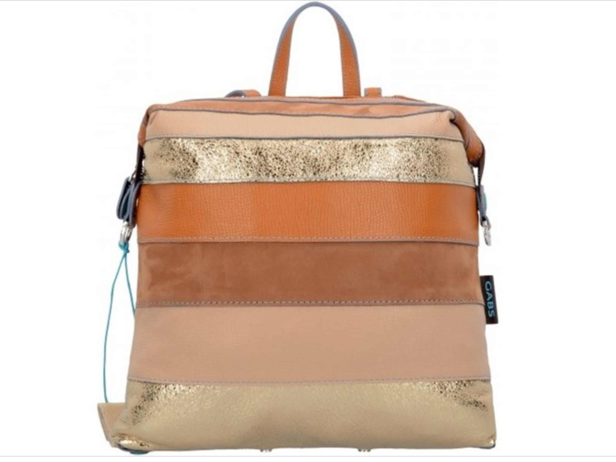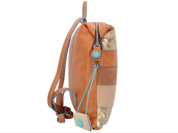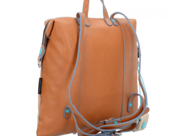 Completa il tuo lookZaino in pelle trasfomabile, si può chiudere il fondo usando gli automatici per creare altre forme.