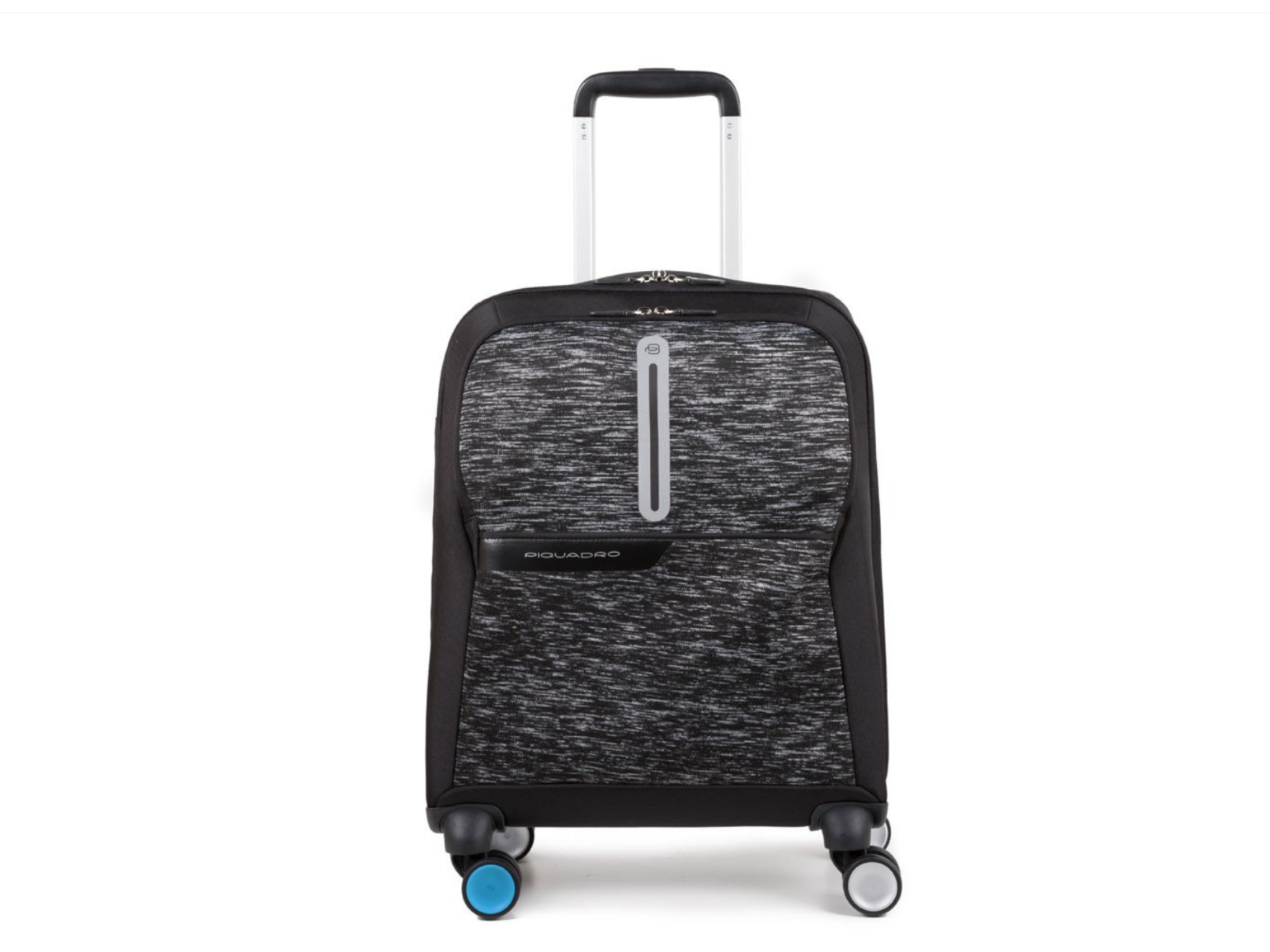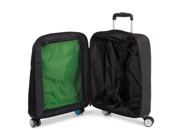 Trolley ultra slim formato cabina in materiale tecnico con cinghia ferma abiti e tasche esterne