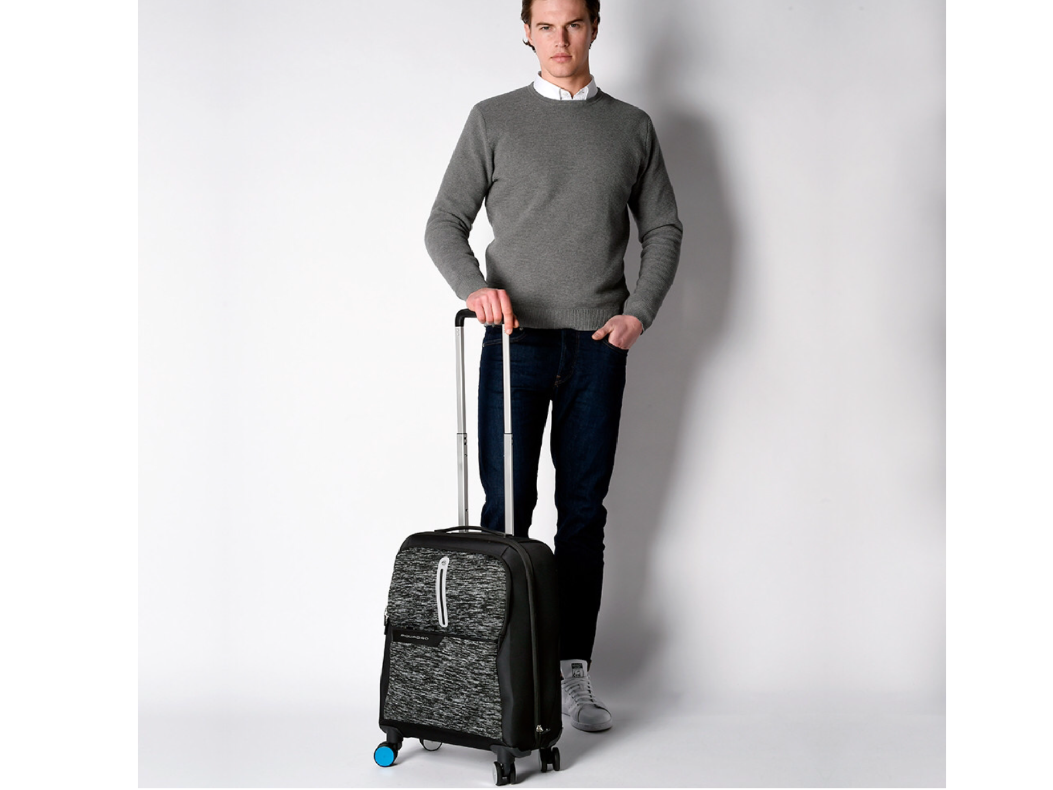 Completa il tuo lookTrolley ultra slim formato cabina in materiale tecnico con cinghia ferma abiti e tasche esterne